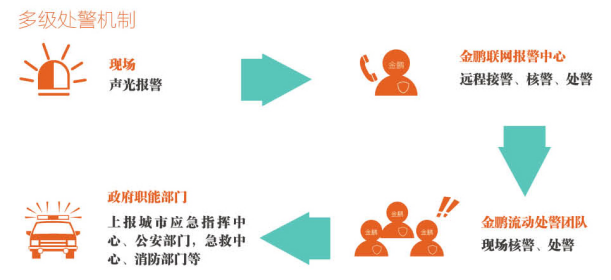 金鵬聯(lián)網(wǎng)報(bào)警安全服務(wù)解決方案是區(qū)別于傳統(tǒng)聯(lián)網(wǎng)報(bào)警的新一代“智能+”報(bào)警與安全防范綜合運(yùn)營服務(wù)產(chǎn)品。金鵬依托自有的“人防+物防+技防”深度結(jié)合的運(yùn)營服務(wù)體系,建立多級(jí)聯(lián)動(dòng)處警機(jī)制,為聯(lián)網(wǎng)報(bào)警用戶提供快速、有效的警情處置服務(wù),并通過安保應(yīng)急服務(wù)網(wǎng)點(diǎn),確保緊急處警人員第一時(shí)間趕赴現(xiàn)場進(jìn)行警情處置。