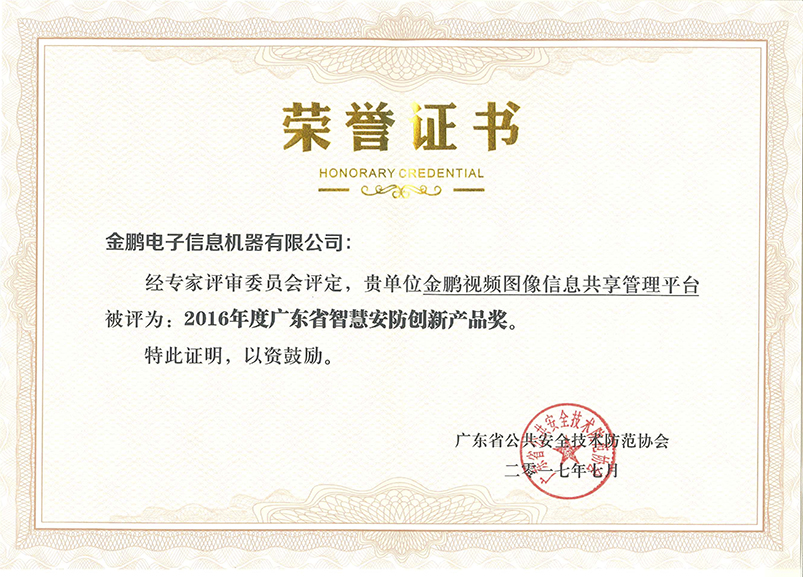2016年廣東省智慧安防創(chuàng)新產(chǎn)品獎