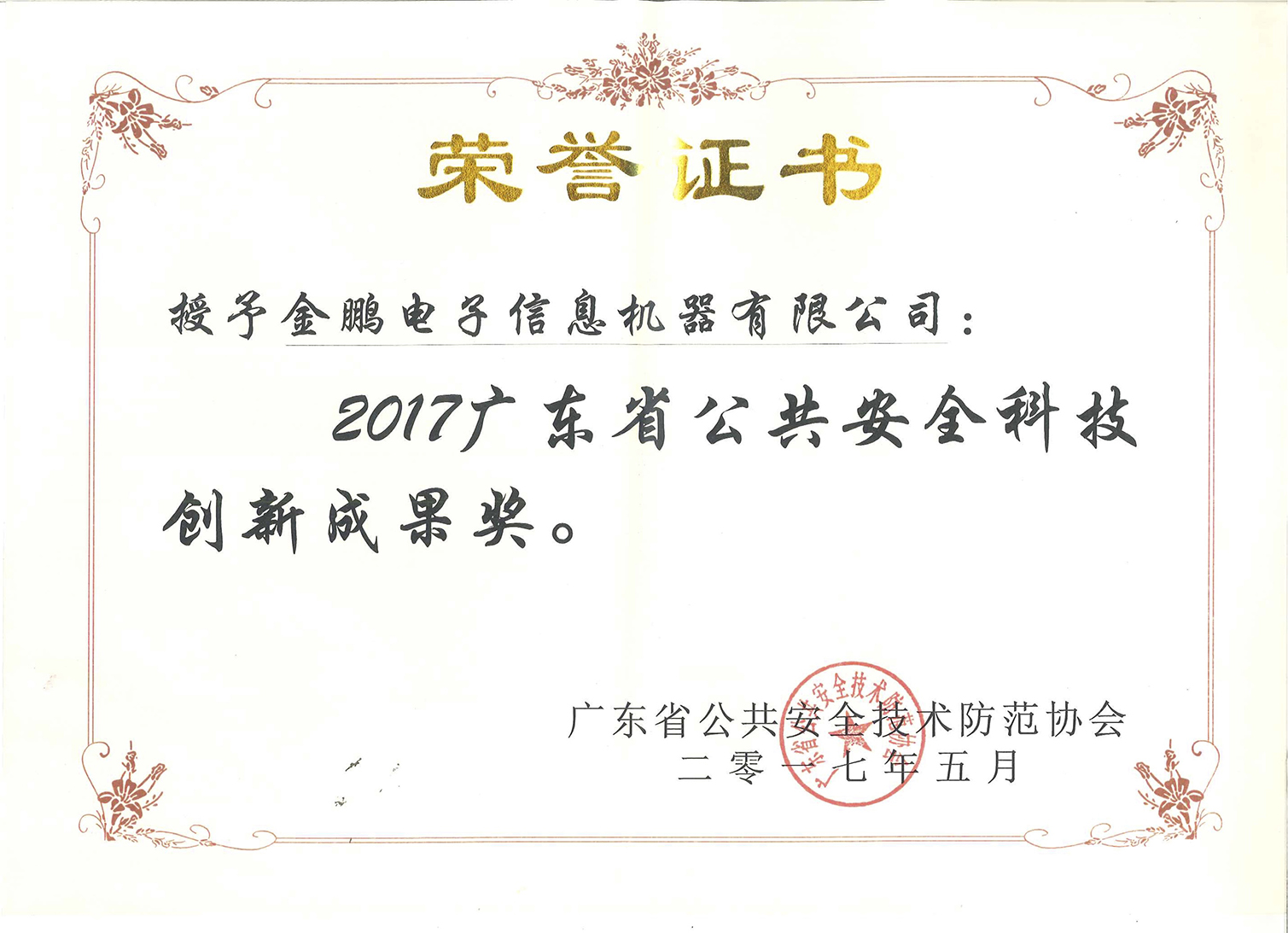2017年廣東省公共安全科技創(chuàng)新成果獎