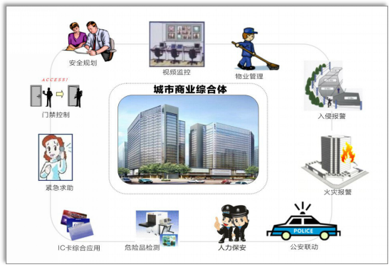 面向集成了商業(yè)、辦公、居住、餐飲、酒店、文娛等多功能的城市綜合經(jīng)濟(jì)體,提供從安全系統(tǒng)的咨詢、設(shè)計(jì)、培訓(xùn)、優(yōu)化、評(píng)估、安防產(chǎn)品供應(yīng)、工程實(shí)施、系統(tǒng)搭建到人員派駐、接報(bào)、受理、出警、巡查、系統(tǒng)維護(hù)以及各類技防系統(tǒng)租賃、業(yè)務(wù)租賃等一條龍的安全保衛(wèi)服務(wù)。