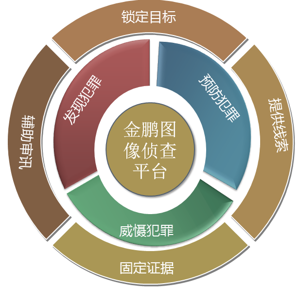 金鵬圖像偵查平臺(tái)根據(jù)相關(guān)案件時(shí)空信息對(duì)相關(guān)離線視頻圖像、在線視頻圖像進(jìn)行采集,通過人工處理和半自動(dòng)處理、自動(dòng)處理等方式,從原始視頻圖像中識(shí)別出有用的線索,對(duì)線索進(jìn)行進(jìn)一步的研判分析、軌跡追蹤、串并分析等處理,配合其他偵查手段盡可能地、盡快地鎖定嫌疑人、確定嫌疑人身份,為刑警、便衣等專業(yè)警種進(jìn)行刑事案件和治安案件偵破、打擊犯罪提供有效的視頻圖像線索支持和證據(jù)支持。