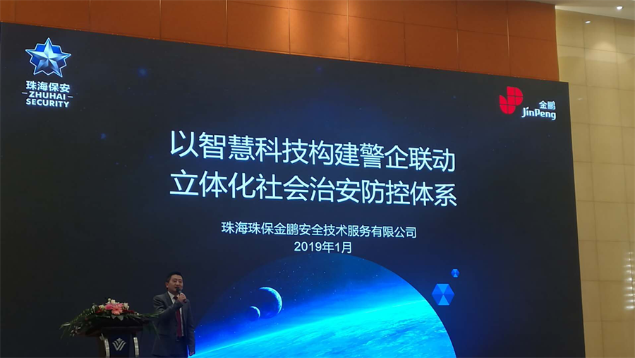珠海珠保金鵬安全技術(shù)服務(wù)有限公司盧慶總經(jīng)理受主辦方邀請(qǐng)?jiān)跁?huì)上發(fā)表了《以智慧科技構(gòu)建警企聯(lián)動(dòng)立體化社會(huì)治安防控體系》的主題演講。盧總重點(diǎn)介紹了金鵬電子信息機(jī)器有限公司與珠海保安集團(tuán)有限公司通過(guò)戰(zhàn)略匹配、優(yōu)勢(shì)互補(bǔ)、強(qiáng)強(qiáng)合作,合資成立珠海珠保金鵬安全技術(shù)服務(wù)有限公司,以智能視頻監(jiān)控、大數(shù)據(jù)、物聯(lián)網(wǎng)和云計(jì)算等新技術(shù)為支撐,以技防+人防+數(shù)據(jù)+場(chǎng)景服務(wù)為業(yè)務(wù)導(dǎo)向,構(gòu)建公安城市治安防控智慧云平臺(tái)(一級(jí)平臺(tái))和企業(yè)報(bào)警監(jiān)控智慧云警平臺(tái)(二級(jí)平臺(tái))的兩級(jí)警企聯(lián)動(dòng)立體化防控體系,開(kāi)展重大安?;顒?dòng)、重大事件應(yīng)急響應(yīng)、企業(yè)安保、社區(qū)家庭安保的綜合安全保衛(wèi)和報(bào)警運(yùn)營(yíng)服務(wù),為報(bào)警運(yùn)營(yíng)服務(wù)行業(yè)走出一條創(chuàng)新發(fā)展之路。