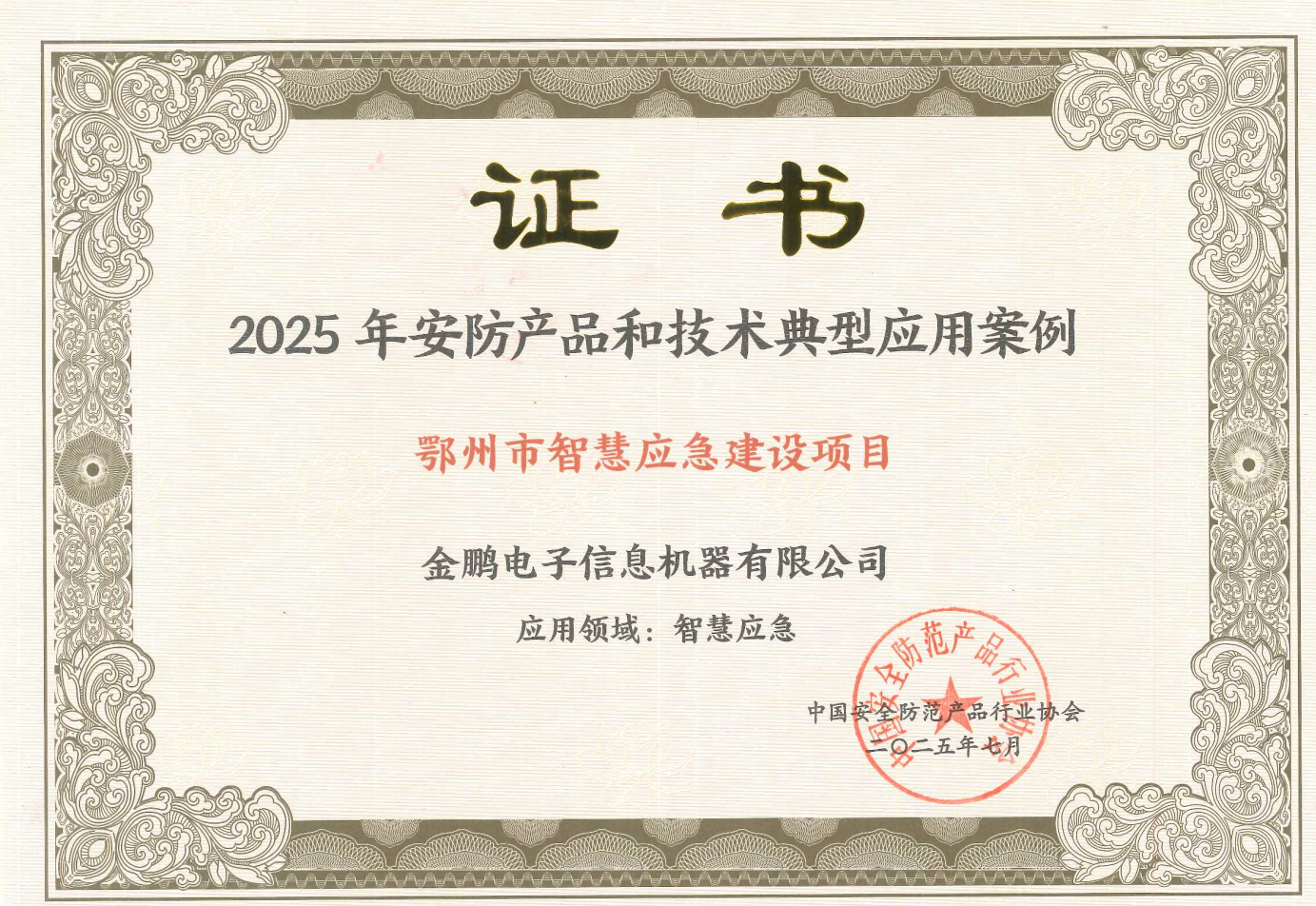 2025年9月26日,由中國安全防范產(chǎn)品行業(yè)協(xié)會主辦的2025低空安全產(chǎn)業(yè)發(fā)展論壇暨第三屆中國安防無人系統(tǒng)安全高峰論壇在北京舉辦。中國安防產(chǎn)品行業(yè)協(xié)會專家委員會秘書長傅永超主持發(fā)布2025年安防行業(yè)典型應(yīng)用案例。金鵬電子申報的鄂州智慧應(yīng)急建設(shè)項目榮獲2025安防行業(yè)產(chǎn)品與技術(shù)應(yīng)用典型案例榮譽稱號。