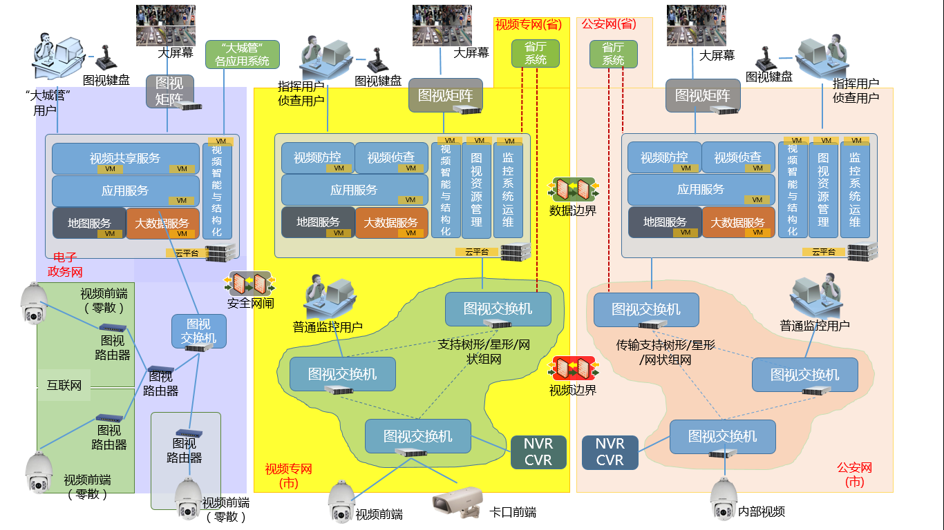 支持視頻專網(wǎng)、公安網(wǎng)、電子政務網(wǎng)、企業(yè)專網(wǎng)和互聯(lián)網(wǎng)等多種網(wǎng)絡混合組網(wǎng),支持子網(wǎng)隔離、干線網(wǎng)絡等負載分配與安全管理,圖視流的傳輸支持樹形、星形、網(wǎng)狀等多種應用層網(wǎng)絡拓撲結構。
