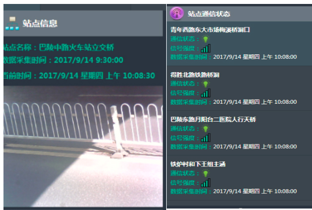 基于GIS地圖、GPS技術(shù)將橋涵隧道點(diǎn)在一張圖上展現(xiàn),圖標(biāo)閃爍展現(xiàn)重點(diǎn)監(jiān)測點(diǎn),并將站點(diǎn)信息、站點(diǎn)通信狀態(tài)、采集狀態(tài)進(jìn)行實(shí)時(shí)更新,實(shí)現(xiàn)對(duì)城市橋涵隧道的智能監(jiān)控。